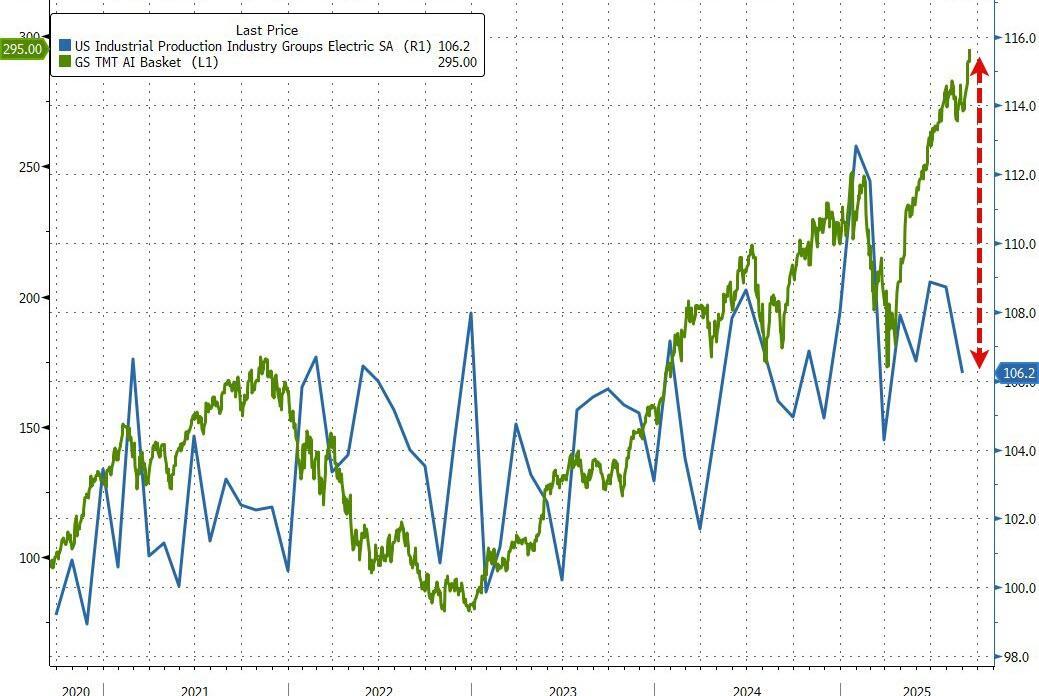 We have a question though... if AI is so successful (as proxied by the stock prices of AI companies), then why isn't demand for electricity (from Utilities) soaring?