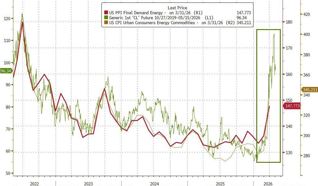 But the Energy PPI index appears to have 'underperformed' relative to oil...