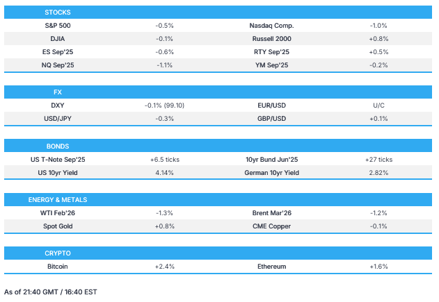 - G10 FX were generally firmer, albeit modestly against the dollar, with the EUR and AUD the laggards. Newsflow and data were light across the space, with remarks seen from policymakers. BoE's Taylor reiterated his view that policy is to normalise at neutral sooner rather than later. Meanwhile, ECB's de Guindos said inflation is in a good place.