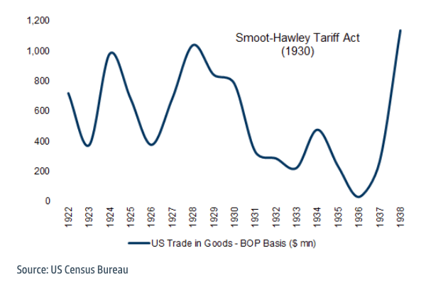 The Smoot-Hawley Tariff Act contributed to a c.60% drop in U.S. trade in 1931/32