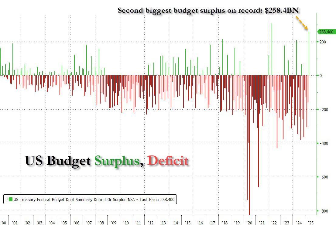 US Treasury Shocks With Second Biggest Budget Surplus In History