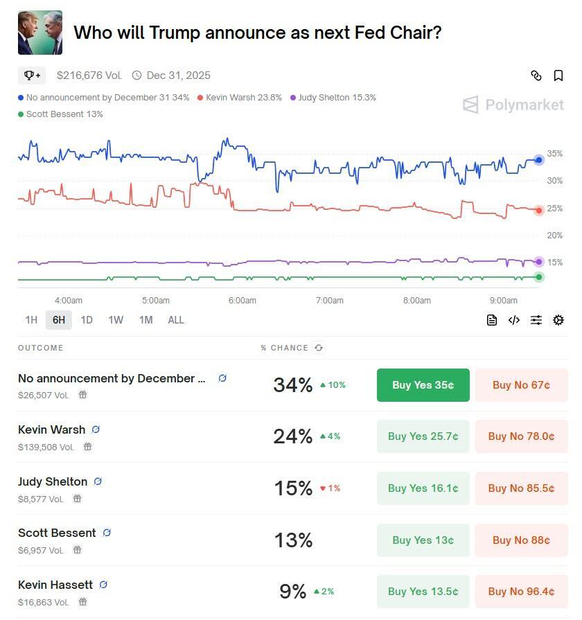Remarkably, Waller isn't even among the list of candidates considered by Polymarket as next Fed chair.