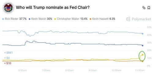 Interestingly, after Chris Waller's dissent, his odds were bid up of getting The Fed Chair job...