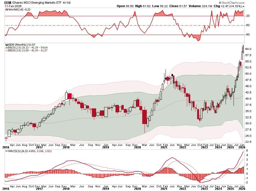 As shown, the move in Emerging Market Stocks (EEM) has been extremely sharp, making it much more exposed to a deep reversal if the dollar rallies.