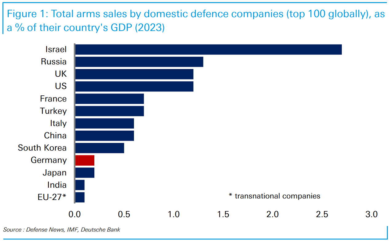 Today’s Chart of the Day from Reid shows how far Germany lags many of its peers in terms of defense spending so there is plenty of scope for change.
