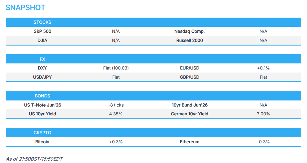 - Click for the Newsquawk Week Ahead.