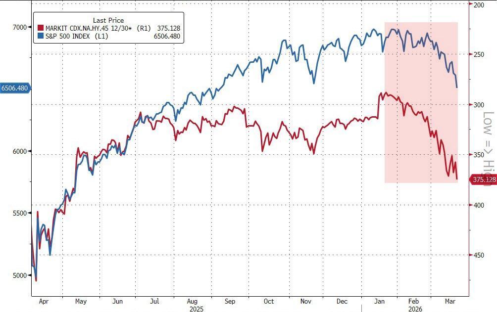 Most investors spend their time watching the S&P 500. That’s a mistake, because the credit market is the real “tell.” The bond market has been whispering a warning for weeks now, and credit spreads are now shouting it. As of this writing, the CDX Index, a benchmark measure of credit default swap spreads, has climbed to a nine-month high while the S&P 500 sits within 5% of its all-time peak. Over the past 20 years, every time that combination appeared, a bear market followed. Every single time.