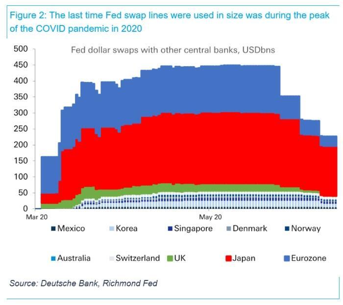 As Deutsche Bank’s chief FX strategist George Saravelos highlighted in a recent report on the topic, doubts over the Fed’s willingness or ability to step up when needed on is a “nuclear button” for the dollar’s future: