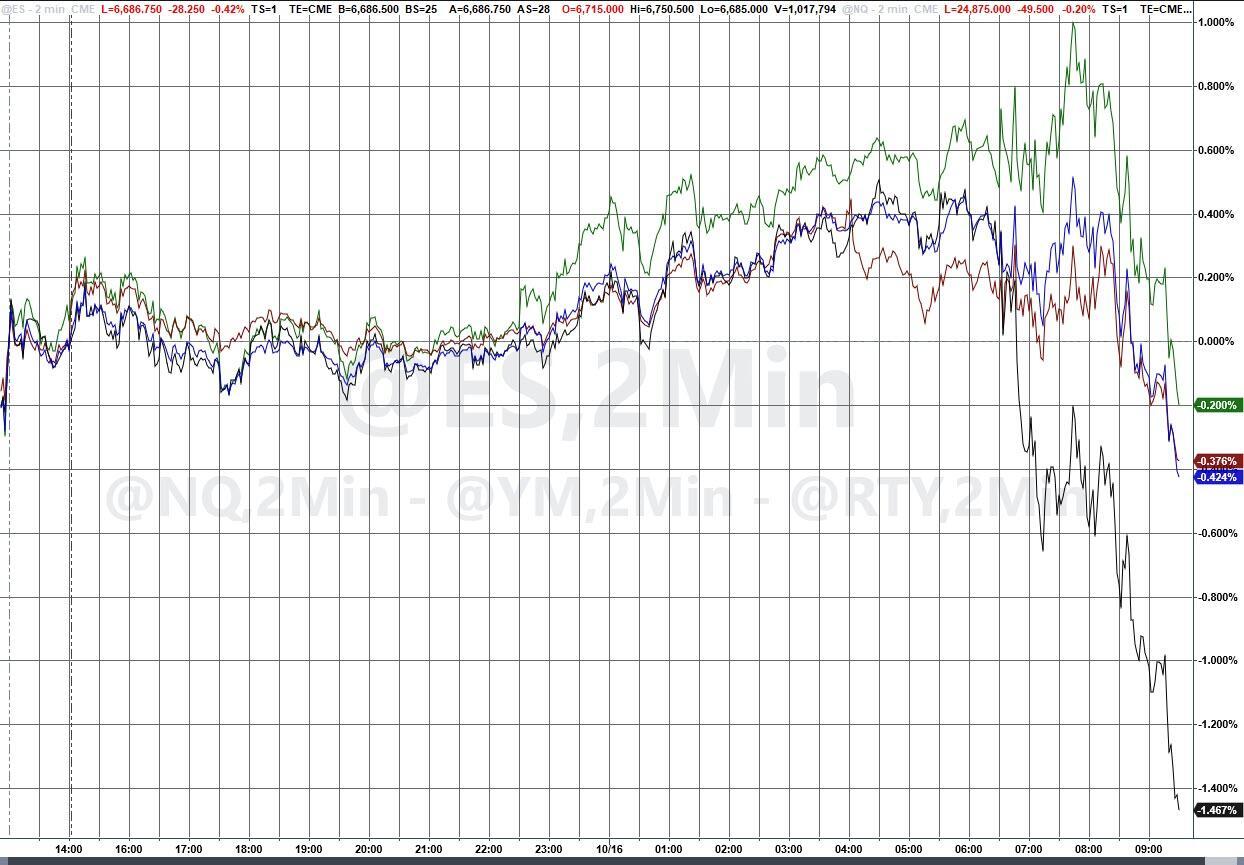 Bonds are aggressively bid with 2Y yields are suddenly collapsing (10Y back below 4.00%)...