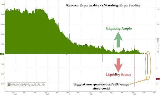 The most important indicator, as always, remains the SOFR rate: should the recent drift higher continue, the self-fulfilling cascade of a liquidity shortage will almost certainly be activated.