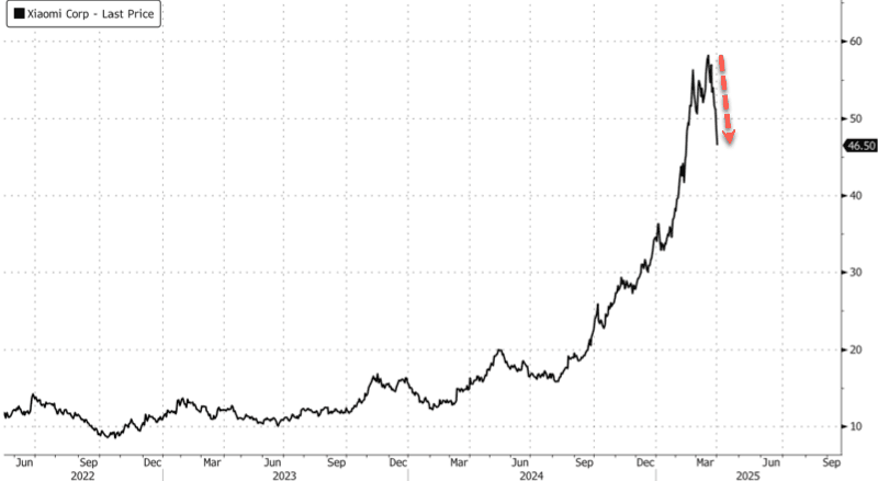 HK shares of Xiaomi closed down 5.5% and have since tumbled into a bear market since peaking in mid-March. Downward pressure began when it raised about $5.5 billion in an equity sale last week to fund EV expansion.