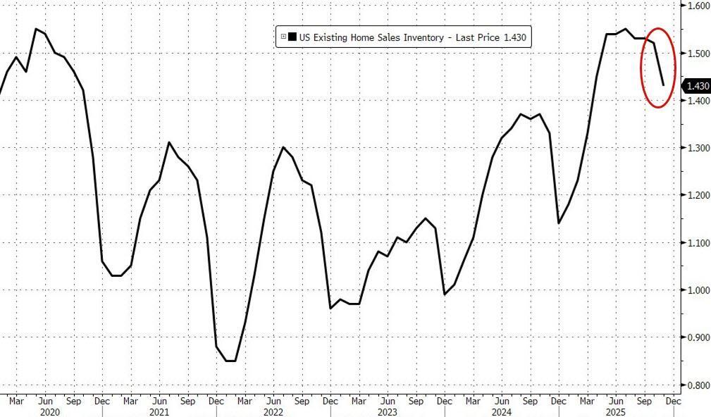 In November, the supply of previously owned homes on the market fell from the previous month to 1.43 million, roughly flat in recent months.