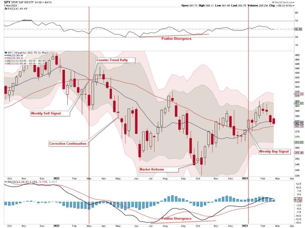 As discussed in last week’s post, “Hope In The Fear,” the weekly “sell signal” was triggered.