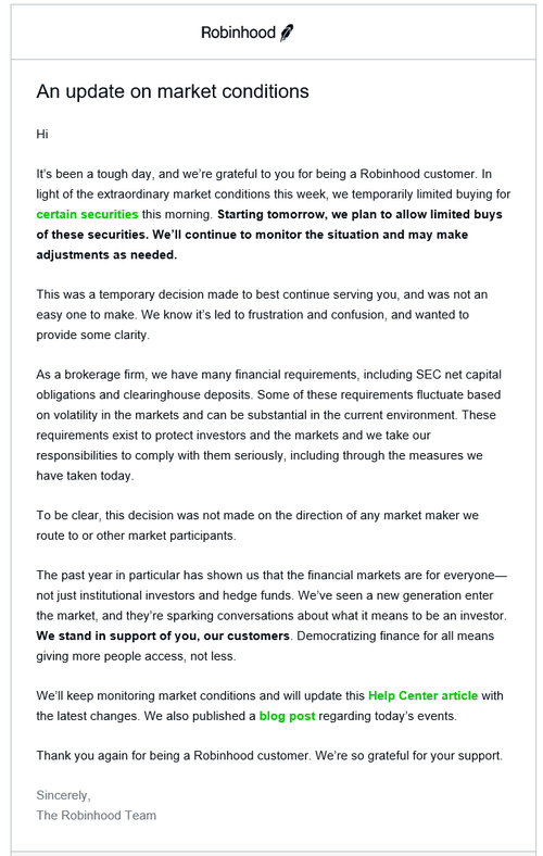 Additionally, Robinhood has released the following statement: