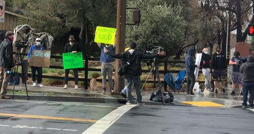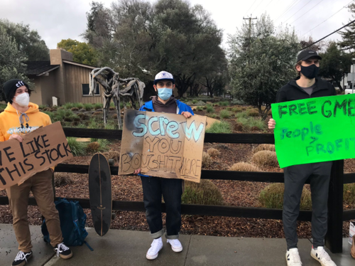 Protesters also showed up at Robinhood headquarters in Menlo Park, CA.