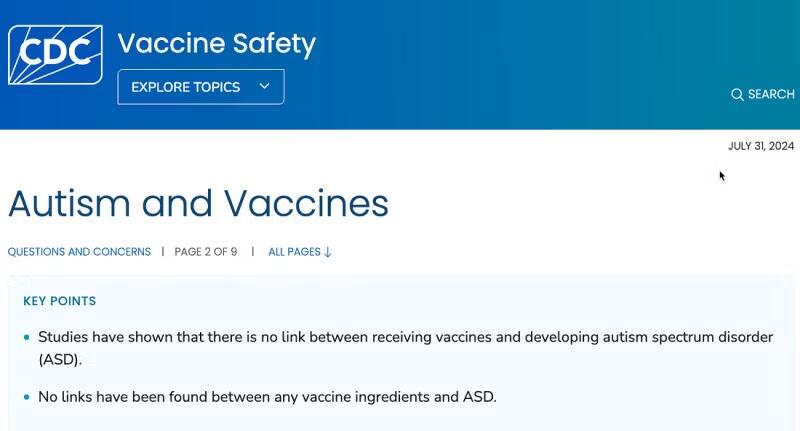 The CDC cites a series of authoritative reviews — including the 1991 and 2012 Institute of Medicine’s assessments, and the Agency for Healthcare Research and Quality’s review in 2021 — all concluding that the evidence was “inadequate to accept or reject” a causal relationship between early-life vaccines and autism.