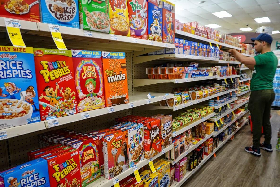 Boxes of sugary cereal fill a store's shelves in Miami on April 16, 2025. Health and Human Services Secretary Robert F. Kennedy Jr. said that many manufactured food products are high in calories but low in nutritional value. Joe Raedle/Getty Images