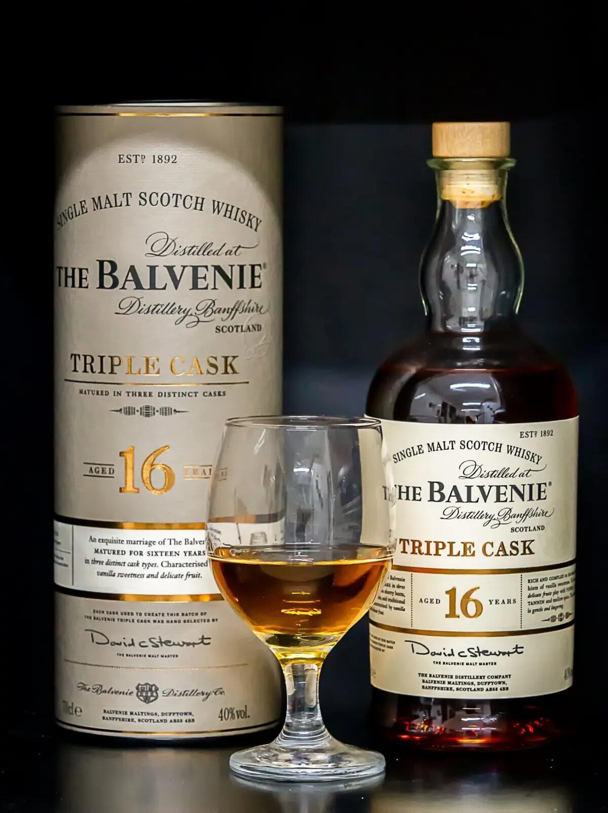 Triple cask single malt Scotch whisky aged for 16 years from the Balvenie distillery in Dufftown, Scotland. Adilson Sochodolak/Shutterstock