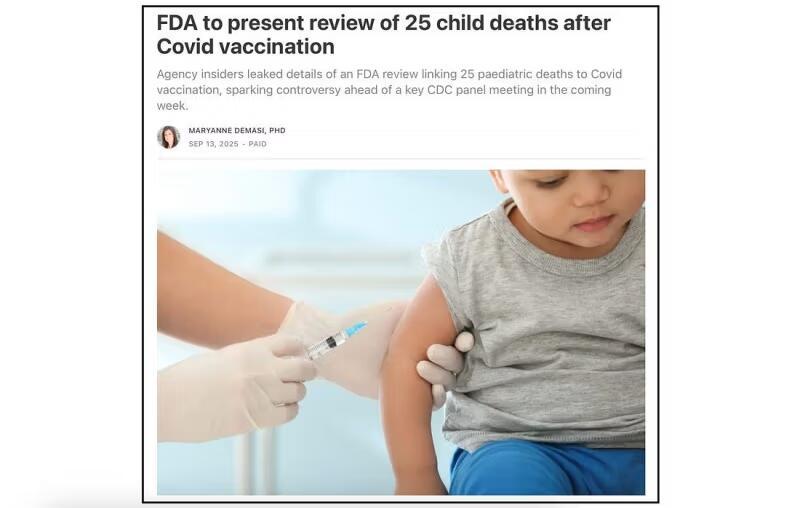In September, it was reported that FDA officials had privately investigated 25 paediatric deaths following Covid vaccination — the first systematic review of such cases since the rollout began.