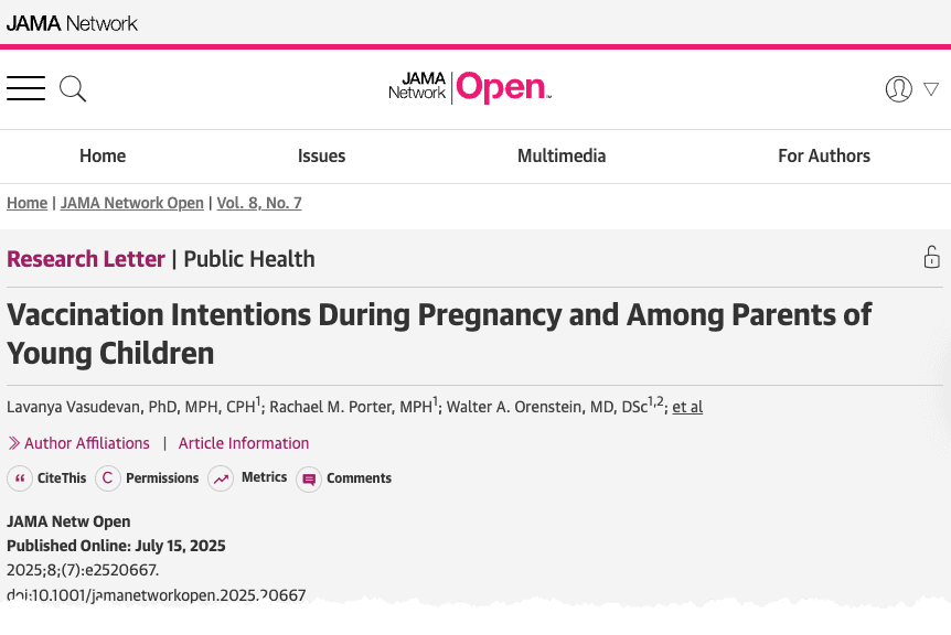 Titled "Vaccination Intentions During Pregnancy and Among Parents of Young Children," researchers found that 33% of parents with children under age 5 intend to delay or refuse some or all government-recommended vaccines. In contrast, only 4% of first-time pregnant women reported plans to delay or refuse all recommended vaccines.