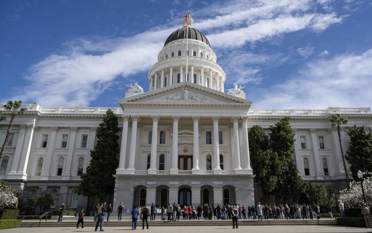 People gather to share about detransitioning in front of the California State Capitol building in Sacramento, Calif., on March 10, 2023. John Fredricks/The Epoch Times