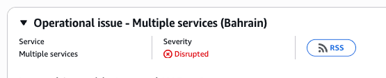 Amazon's Service Health page on its website shows that AWS is "Disrupted" in the Bahrain operating area.