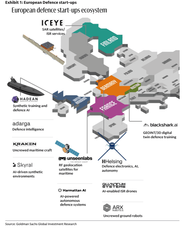 Goldman analysts, led by Sam Burgess, told clients on Tuesday that European defense is seeing a "rise of the startups," which could reshape an industry long dominated by major defense contractors.