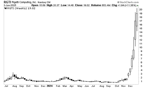I mentioned Quantum Computing as a key sector to watch in mid-December. This area of the market continues to EXPLODE higher with some names like Rigetti Computing (RGTI) up QUADRUPLE digits.