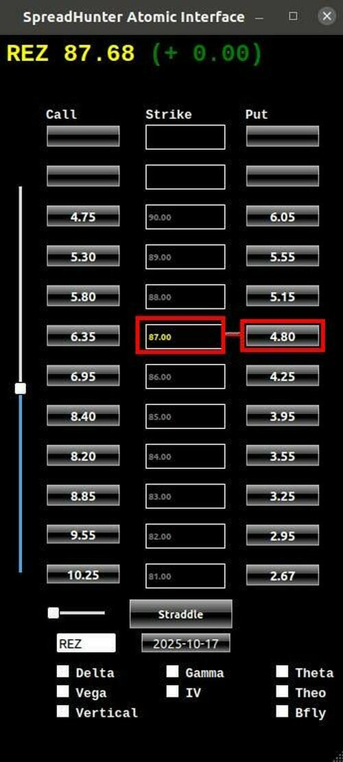 Let’s take a look at the Options Matrix for the REZ Residential Real Estate ETF and see if there are any backspread candidates. We are using an expiration date six months out.