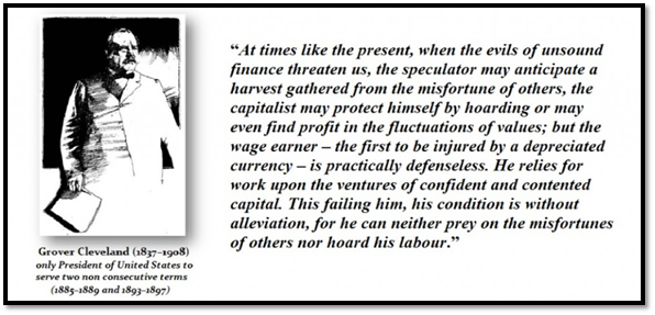 Economists, preoccupied with theories of absolute control, failed to grasp the significance of net capital movement during the global rise of Marxism. In response, politicians introduced regulatory measures, beginning with the Interstate Commerce Act of 1887 and the Sherman Anti-Trust Act of 1890 to curb business consolidation. These were accompanied by the McKinley Tariff of 1890, crafted by William McKinley and John Sherman. The pivotal Sherman Silver Purchase Act of 1890, designed to appease Free Silver Democrats, mandated increased silver purchases, expanding the money supply but destabilizing U.S. Treasury gold reserves. This unsound policy contributed to the Panic of 1893, prompting President Grover Cleveland to push for its repeal.