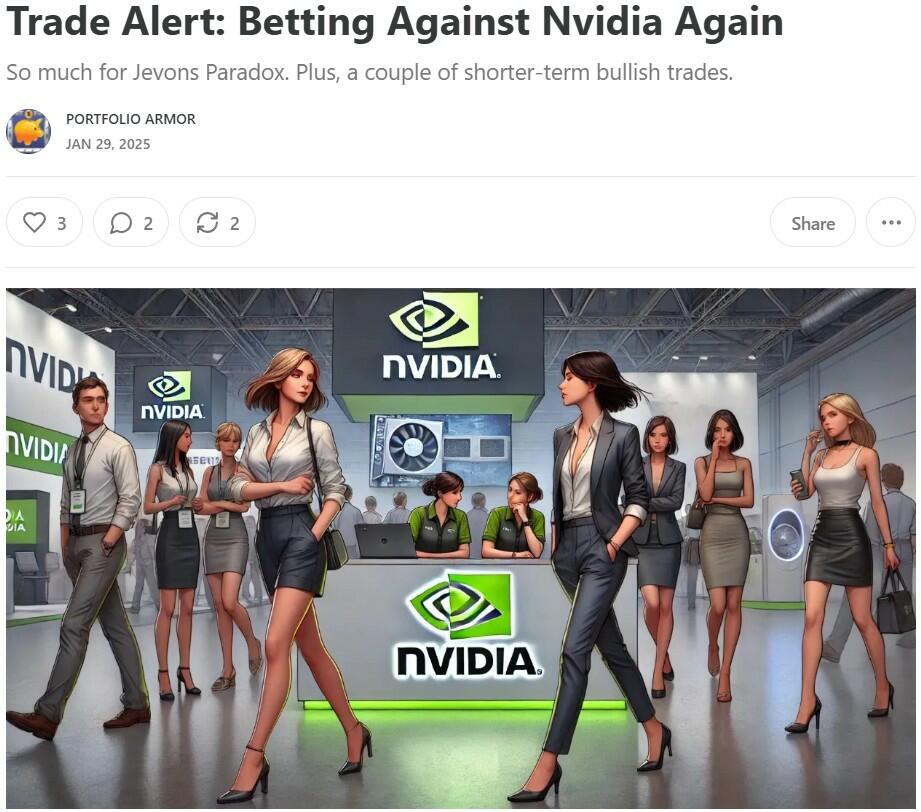 The U.S. company most threatened by China's AI overproduction is likely to be Nvidia. If you're an enterprising investor, you might consider betting against it, using the long term trade we posted below. If Nvidia hits $130 on a rally, that might be a good time for an entry.