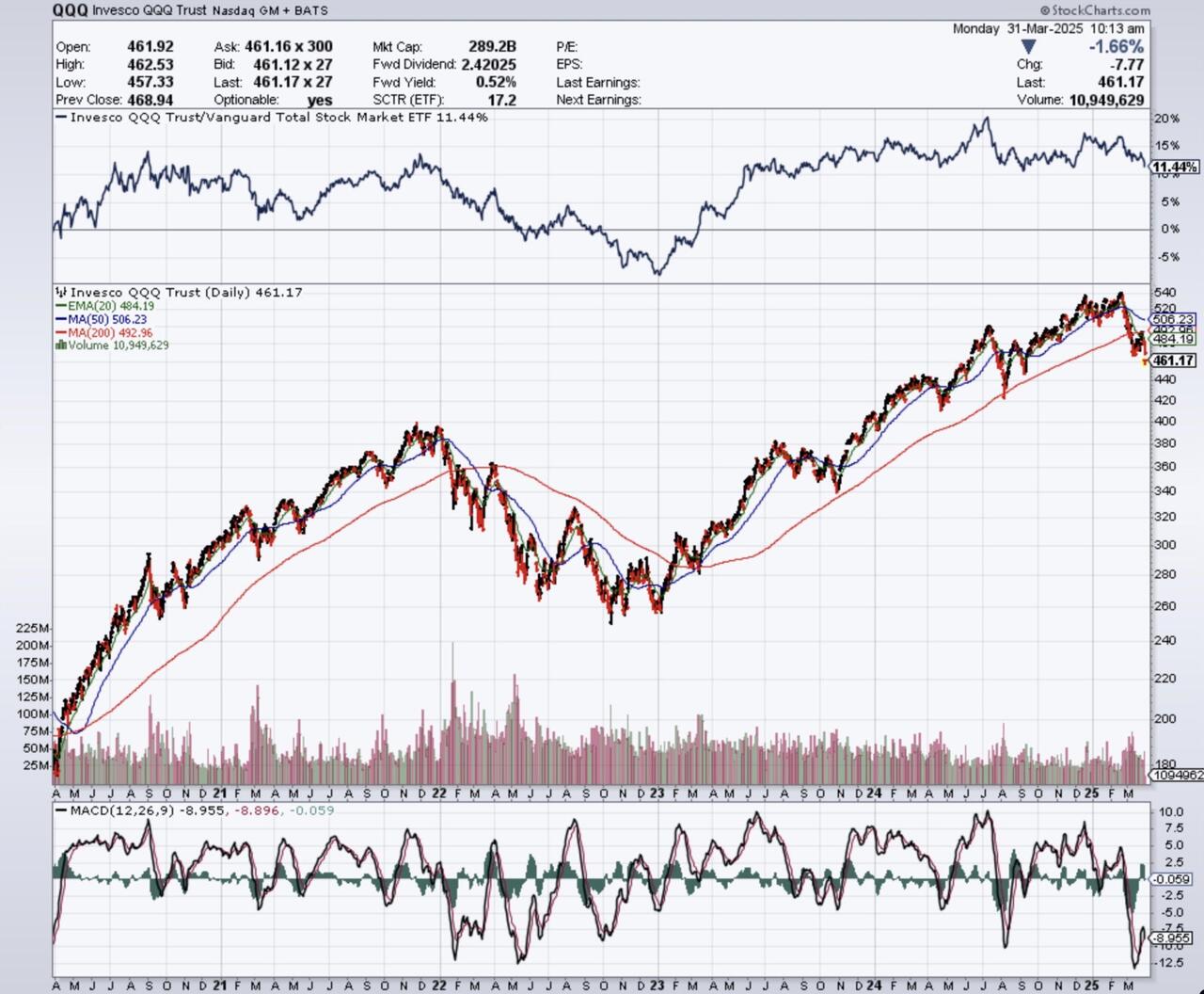 That would put the QQQ at about $410-$420 in this chart - a level that was still an all time high less than 18 months ago. Zero consideration of the fact that valuations would still be elevated and that the NASDAQ traded at almost 40% lower just two short years ago!
