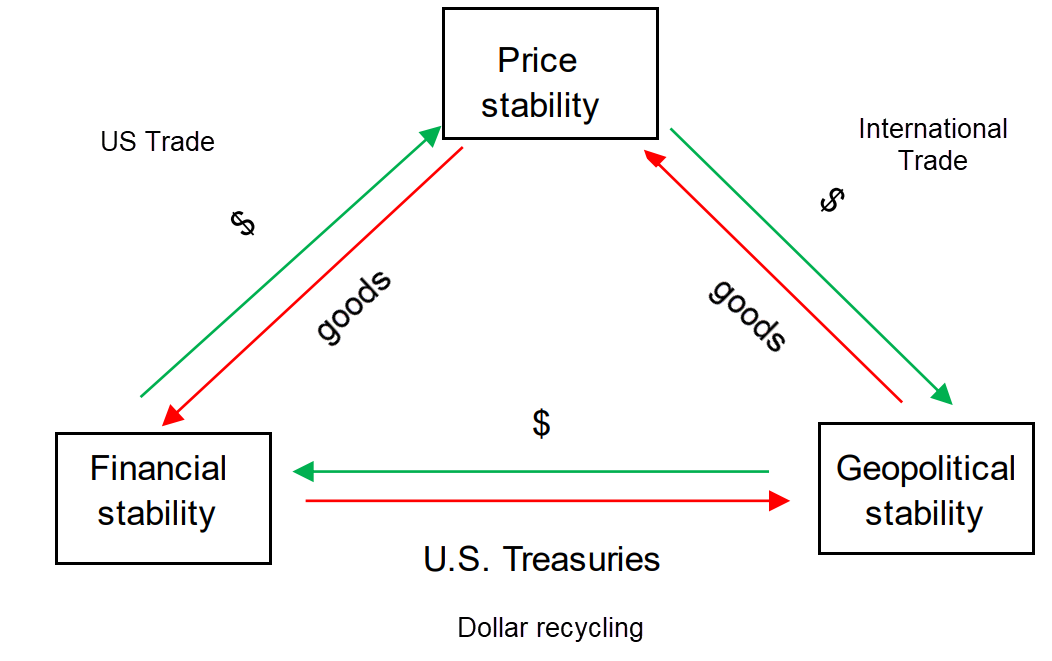 For a while, it was a "heavenly match": offshore nations would be able to upscale their economies and their firms could easily obtain dollar credit (including dollar credit from non-US banks), all while backstopping their banking system. Having a foothold in the US financial system also afforded them a spot under the American security umbrella. Across the ocean, this meant the US would be able to finance and support its "exorbitant privilege" that relied on ample demand for Treasuries. Ample demand for Treasuries and supply chain security meant inflation was reasonable. China, and any trade partner, dutifully recycling their earnings back into our debt claims was the bedrock of the calm, low inflation world.