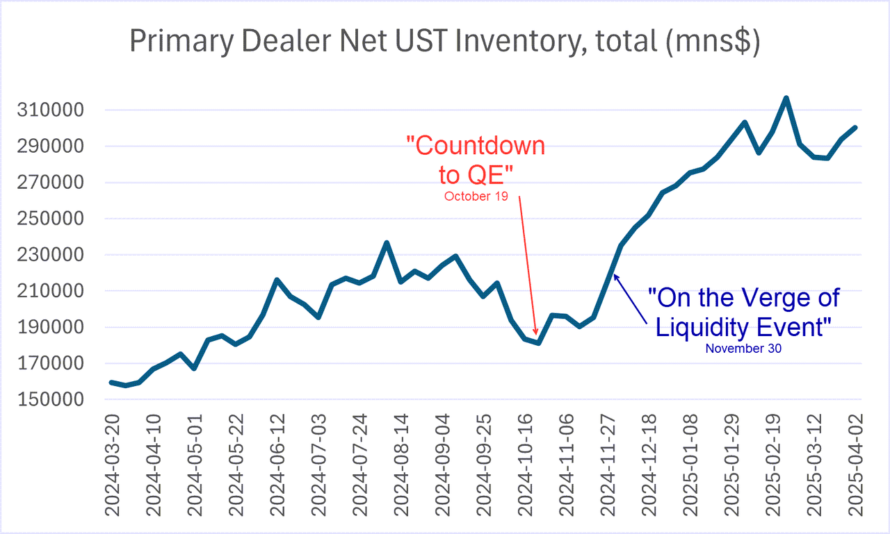 Lo and behold, just days ago, Fed Governor Bowman indicated that she would prioritize exempting Treasuries from the SLR, giving dealers bottomless balance sheets, which back in October I said was probably the only solution and, as I've stressed repeatedly, is mechanically identical to QE.