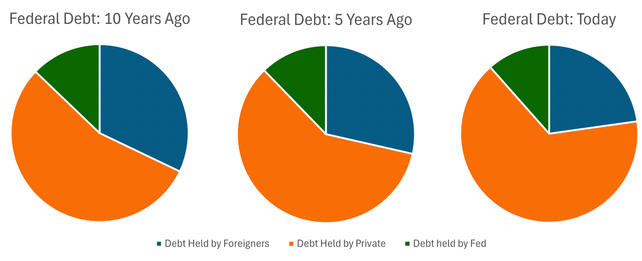 The BlackRock plan is an outline for War Finance, which we of course saw unfold during the ensuing Covid downturn. But more recently, like they said in 2019, BlackRock notes that the Fed's "monetary policy space" (room for rate cuts) remains low due to inflation uncertainty. The Treasury's "fiscal space" (room for deficits) is also exhausted, not only because we're already running gargantuan deficits, but because foreign capital is not going to pick up the tab.