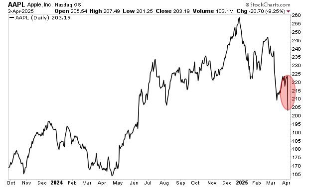 The stock market FINALLY got the message and has entered a free-fall. Companies that rely extensively on offshore manufacturing have been completely OBLITERATED. Yesterday, Apple (AAPL) which depends on China and other nations to produce its products stock declined 10%.