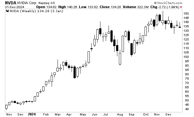 Because of this, NVDA has been a true market leader for most of the bull market begun in 2023. NVDA shares more than tripled in 2024. And at one point, NVDA was the largest company in the world based on market capitalization.