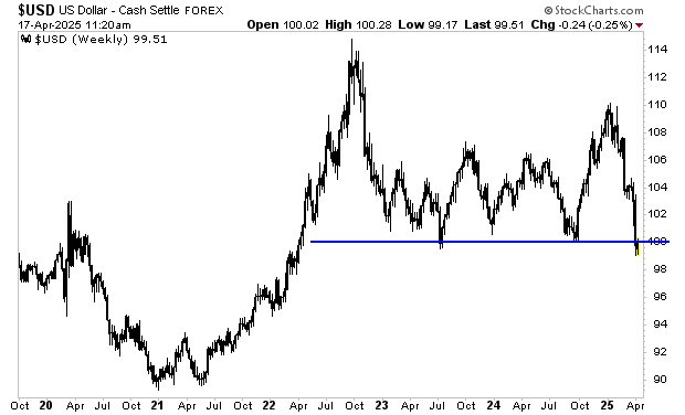 At the same time, the U.S. dollar is breaking multi-year support.