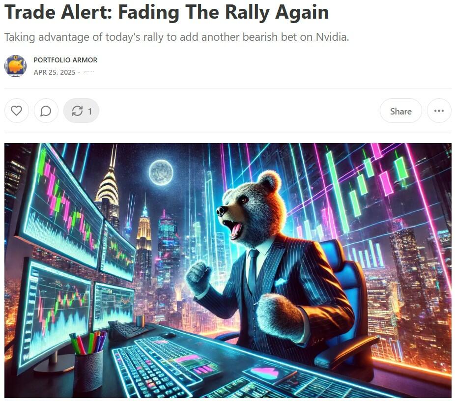 Second, Nvidia. You may recall we placed another bearish bet against it last Friday.