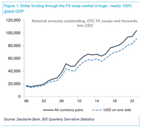 The dollar’s still king, dominating global trade and assets like US Treasuries. But where do non-US folks get their dollars? Spoiler alert: not from US imports. They borrow it through the FX swap market—basically a fancy way of saying, "Hey, I’ll trade you my currency for dollars now and give it back later." It’s like a short-term loan, but much cooler.