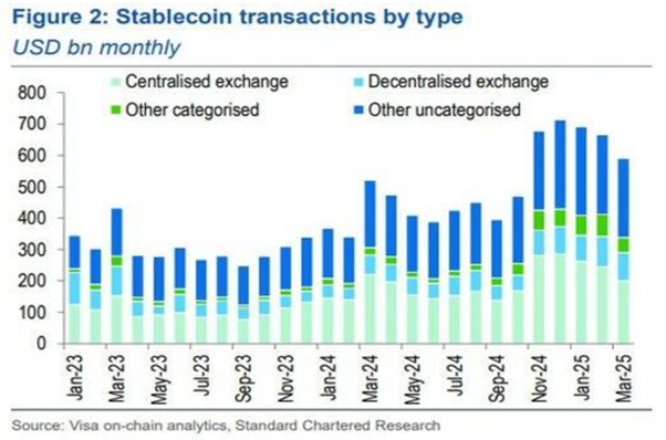 Stablecoin supply is set to skyrocket from USD 230bn today to a cool USD 2tn by 2028, thanks to the GENIUS Act. This surge has big implications for US Treasury buys and the almighty USD’s grip on the global stage. Currently, stablecoins are mainly tethered to Ethereum (60%) and Tron (30%), with USDT (Tether) and USDC (Circle) dominating at 63% and 25%, respectively. Originally used for crypto trading and lending, stablecoins are now becoming a go-to for saving, transacting, and cross-border USD-to-USD dealings. Stablecoin growth has been on fire, with a 50% annualized increase over the past two years. Once the GENIUS Act takes effect, we’re looking at 100% annual growth, pushing monthly transaction volumes from $700bn to $6tn by 2028. This would boost stablecoin usage to 10% of global FX spot-market volume. The Federal Reserve’s Waller sums it up: stablecoins are just another way to keep the USD in charge. And with issuers like Circle stacking up short-duration T-bills, we could see a $1.6tn surge in new T-bill demand by 2028. This would soak up all the new T-bills issued during Trump’s second term, leaving money-market funds as the only bigger players. In short: stablecoins, powered by USD, are reinforcing the dollar’s dominance while conveniently sidestepping threats like tariffs and trade fragmentation.