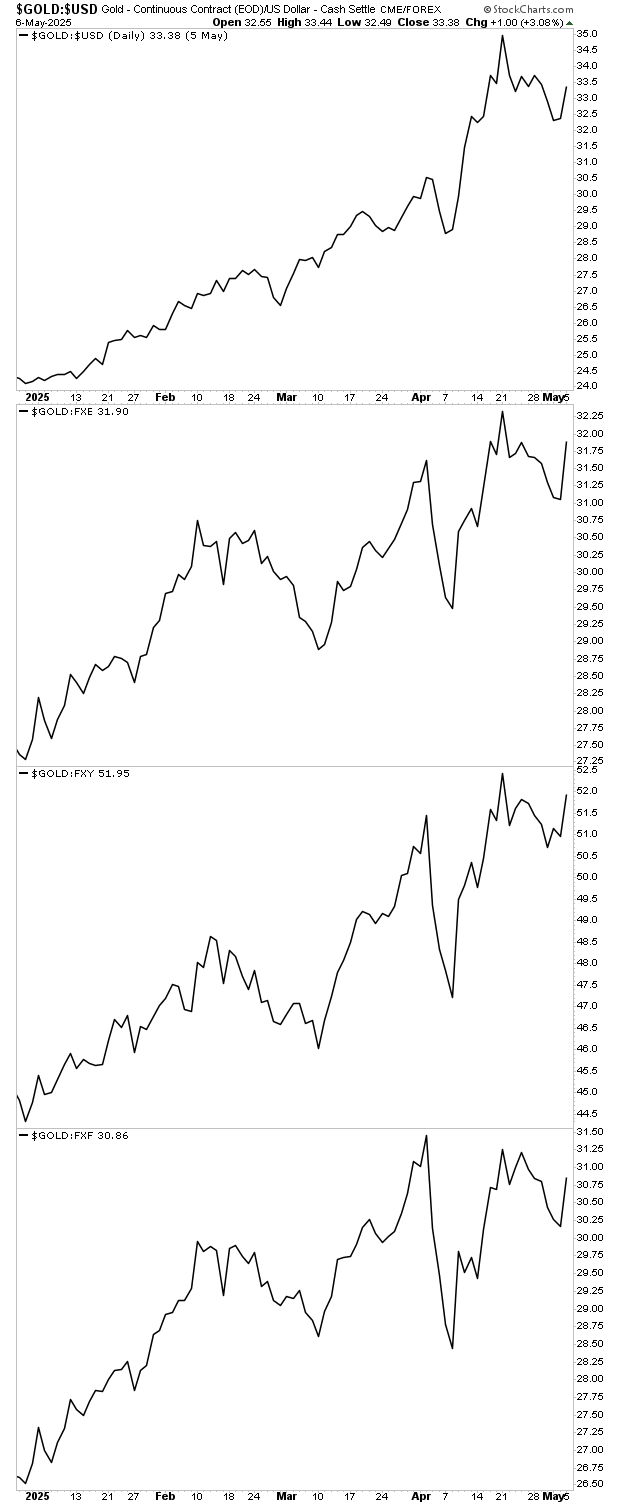 If you don’t believe me, consider that gold is breaking out against EVERY major world currency: the $USD, the Euro, the Yen and even the Franc.