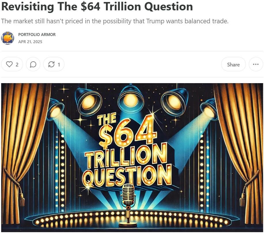 That's been our view since last month. The market hasn't priced in the possibility that most of the Trump tariffs are here to stay, so we'll probably see another leg down when that reality sets in.