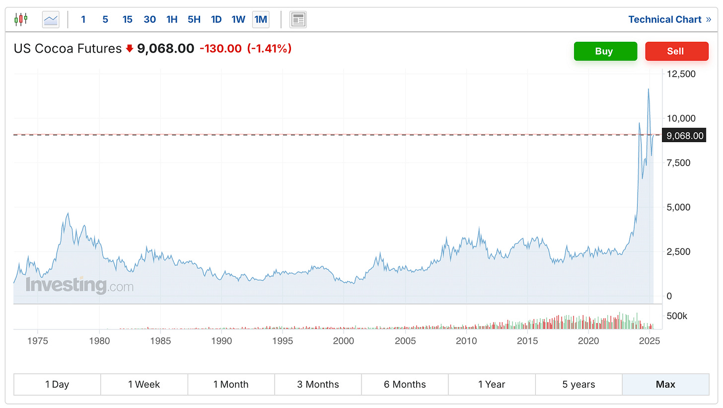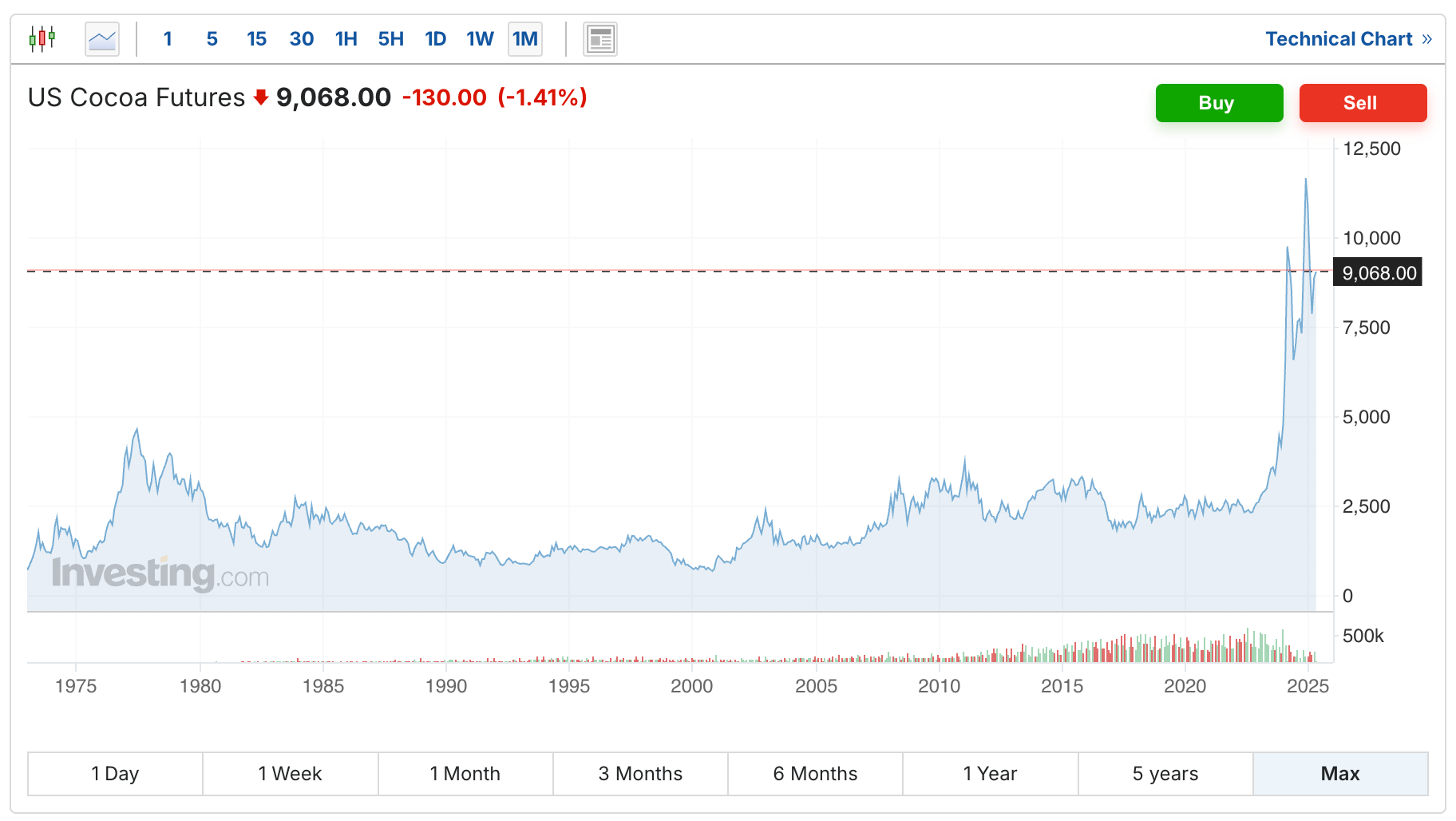 One could, and I have heard many make the argument that because the silver market is in a deficit, the price should already be higher. Which may well be fair enough. But aside from what theoretically ‘should be,’ in terms of what is, it doesn't seem like the silver pricing mechanism is particularly concerned about a severe shortage, or something similar to what happened in the cocoa market.
