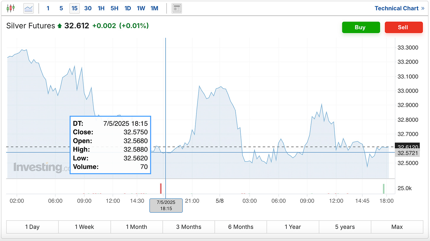 And here you can see how the silver price experienced some volatility, but ended up in basically the same place as where yesterday's session began.