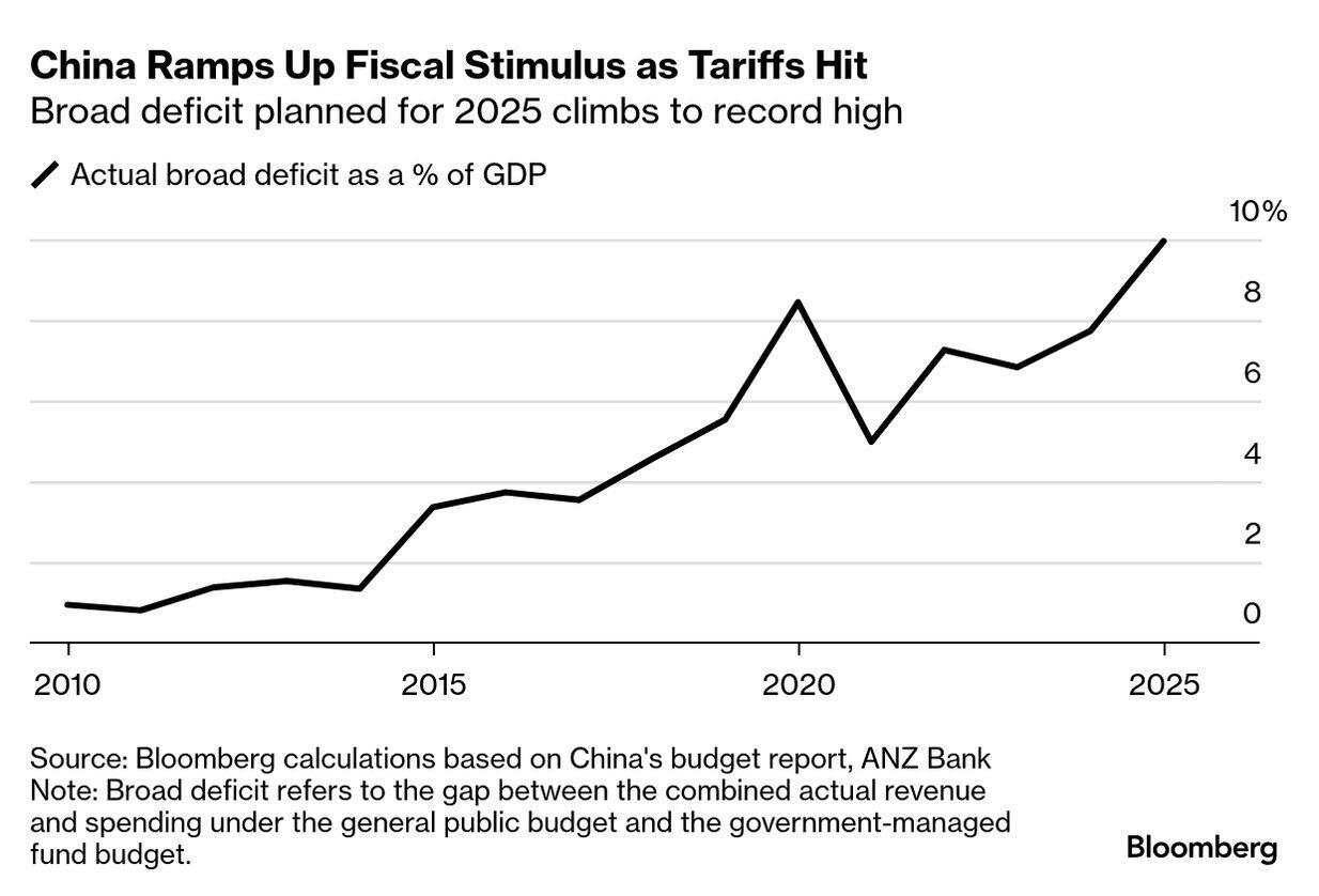 Tax revenue as a share of GDP is already quite low in China (suspiciously low, in fact, but that's not relevant right now), so MOF officials necessarily run a fiscal deficit. Beijing doesn't like currency volatility, so there is a limit on how much money can be printed for additional stimulus in the near term. Like I noted in Beijing's Green Light, the Chinese fiscal deficit is already projected to reach a record high in 2025, and far more when accounting for local government deficits: