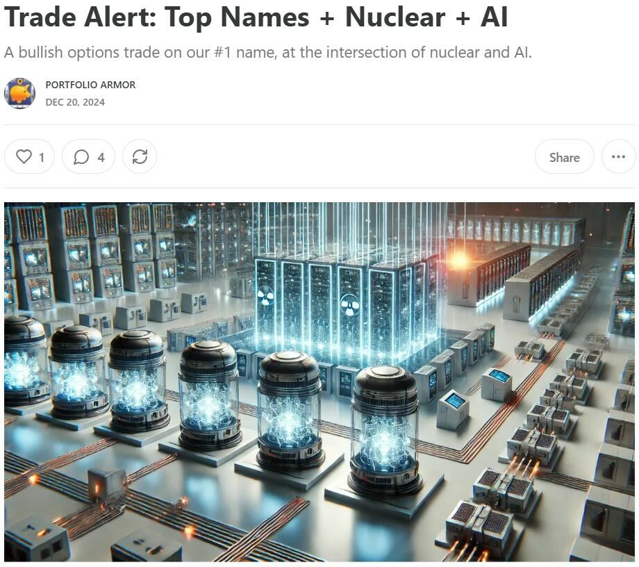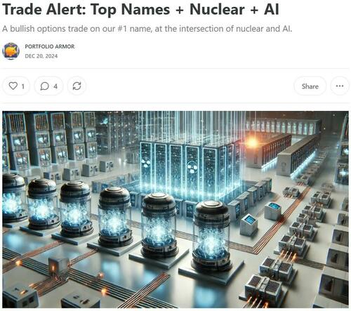 In that post, I mentioned a couple of Portfolio Armor top ten names from last month that have been on a tear, Robinhood Markets (HOOD) and Palantir (PLTR). Another one of our top names went on a tear right after I wrote that, the nuclear energy company Oklo (OKLO) spiked more than 15% yesterday. The trade my subscribers and I placed on it back in December is now on track for a ~400% gain.
