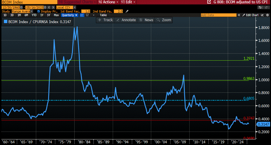 In a world where Pax Americana is more of a historical reference than a functioning reality, countries and corporations alike will be forced to stockpile strategic commodities the way doomsday preppers hoard canned beans — not because it’s trendy, but because uncertainty is the new normal. Supply chains will get bulkier, just-in-time will give way to just-in-case, and the age of abundance will quietly exit stage left. And as the commodity leviathan stirs from its long slumber, inflation won’t just be “sticky” — it’ll be Velcro. That’s a problem for politicians who live on two- to four-year timeframes and central bankers who still pretend CPI is a science. Unfortunately for them, commodity cycles don’t care about re-election calendars.