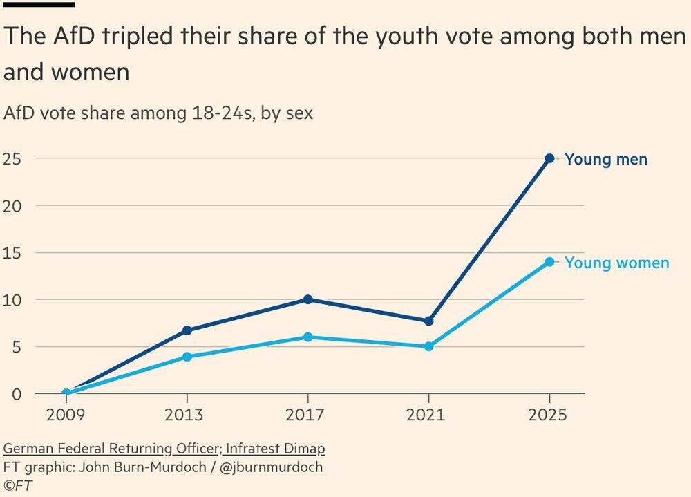 In Germany, the Alternative fur Deutschland party is very popular among the youths and is winning thanks to voters under 60 years old who are worried about the fact that the country they grew up in is becoming unrecognisable due to uncontrolled mass migration.