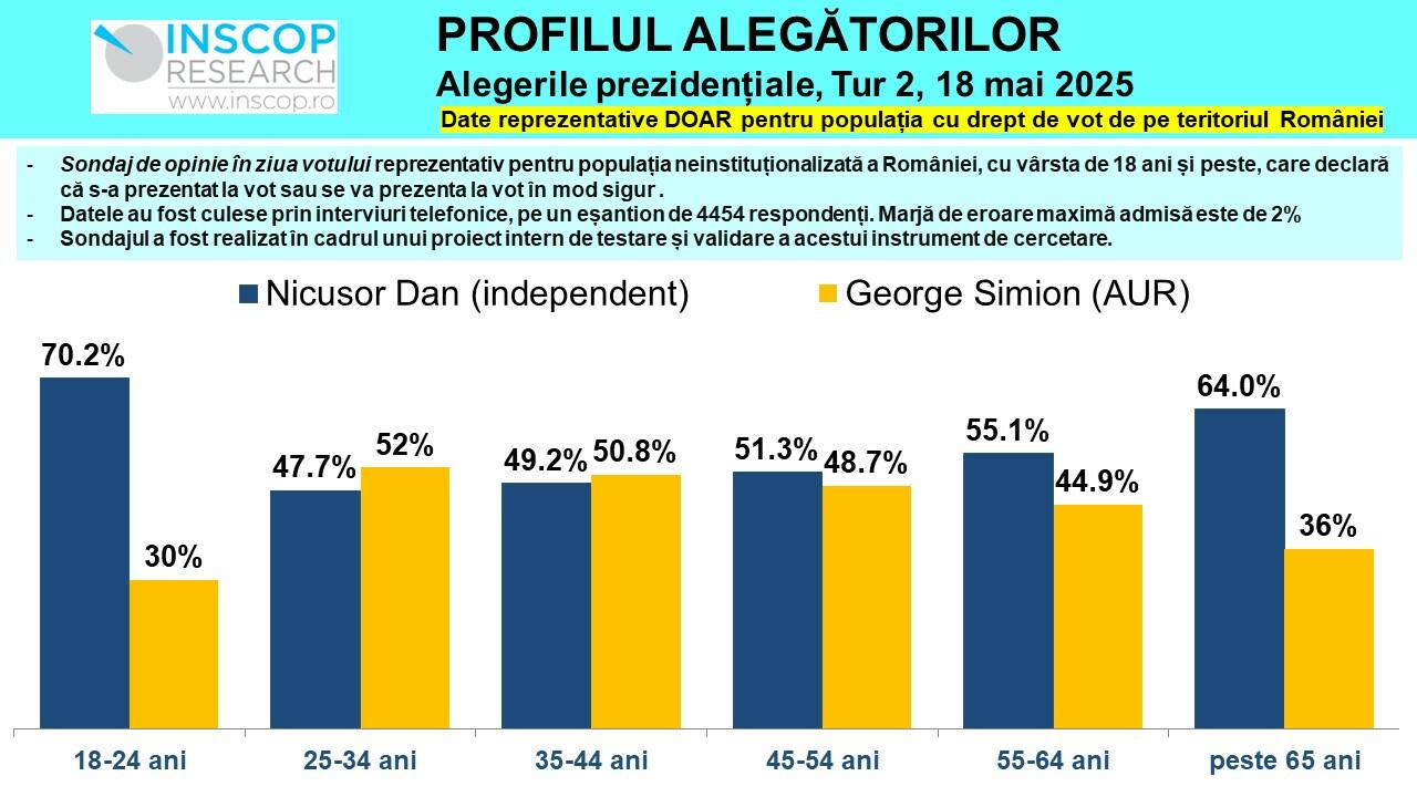 Simion performed poorly among the youth and the elderly and had a mediocre performance with Gen X-ers, winning just two age groups by a slight margin.